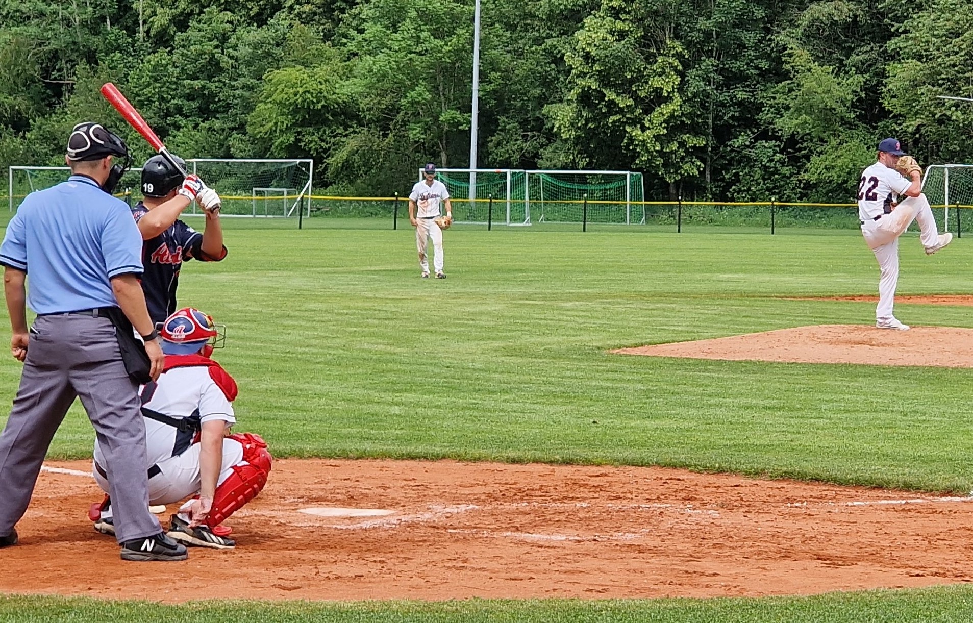 Im zweiten Spiel kamen die Gautinger sofort deutlich besser in Fahrt. Gegen den ersten Werfer der Atomics holten sie direkt im ersten Inning 10 Runs. Auch die Defensive war super in Form. Charlie Coon, der am Donnerstag aus den USA vom Boston College zur Mannschaft gestoßen war, gab sein lange erwartetes Debüt als Pitcher bei den Indians. Neben 5 gepitchten Innings ohne einen Run der Gäste, gelangen ihm außerdem mehrere Hits in der Offensive. Im 5. Inning durfte zudem Mateo Salazar Lobisch sein Debüt für die erste Mannschaft geben. Mateo ist U15-Spieler aus dem Nachwuchsbereich der Indians. Das zweite Spiel war dann auch sehr zügig zu Ende, da beim Stand von 10:0 für die Gautinger die “Mercy-Rule” zur Anwendung kam.